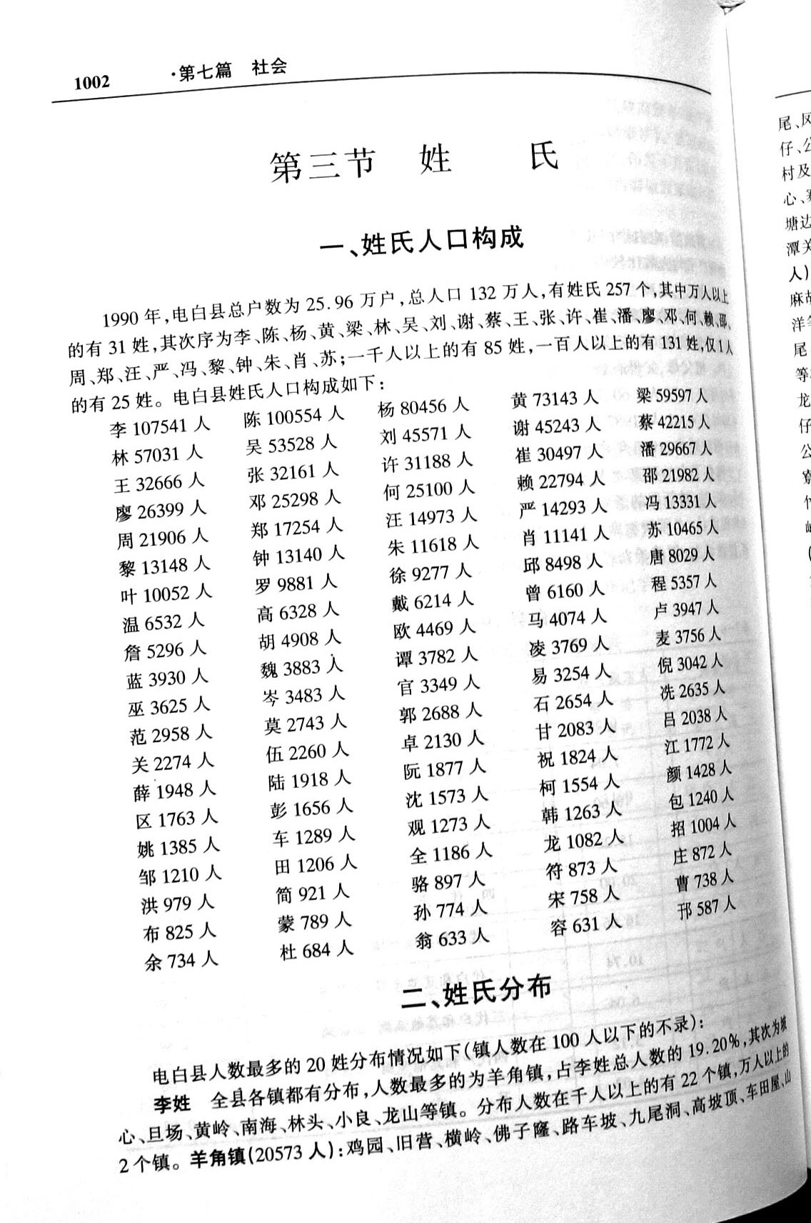 第四谢姓(接近千人);第五是吴姓(略比谢姓少);