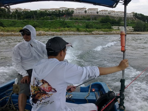 一般都是用活虾,钓大鱼就先用细钩钓池仔(巴浪鱼),然后用活的巴浪鱼钩下去钓大鱼,经常一口就咬掉一半,拉起来看半截巴浪鱼身还在颤抖,有点恐怖!