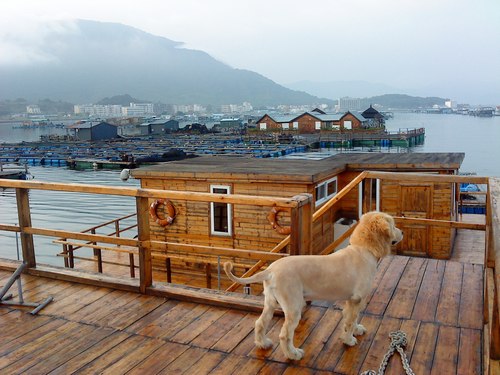 金毛狗那个排环境不错,房间跟酒店搬很舒服,每个房间都用空调,走道还有摄像监控,远处尖顶的就是传说中的海上皇宫.