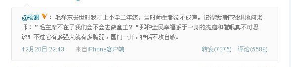 央视主播杨澜微博这样评毛!