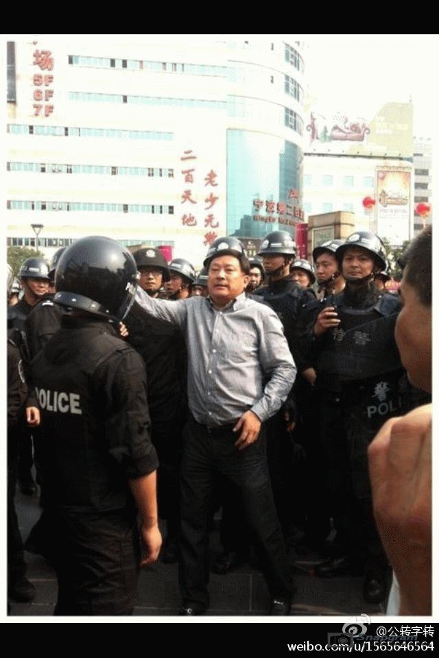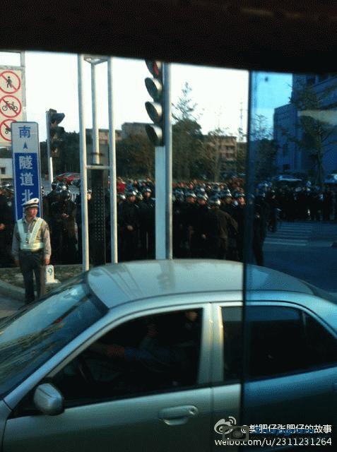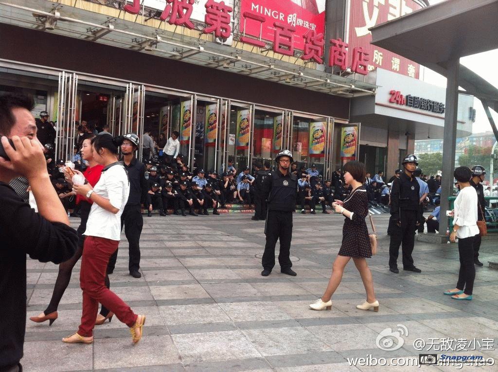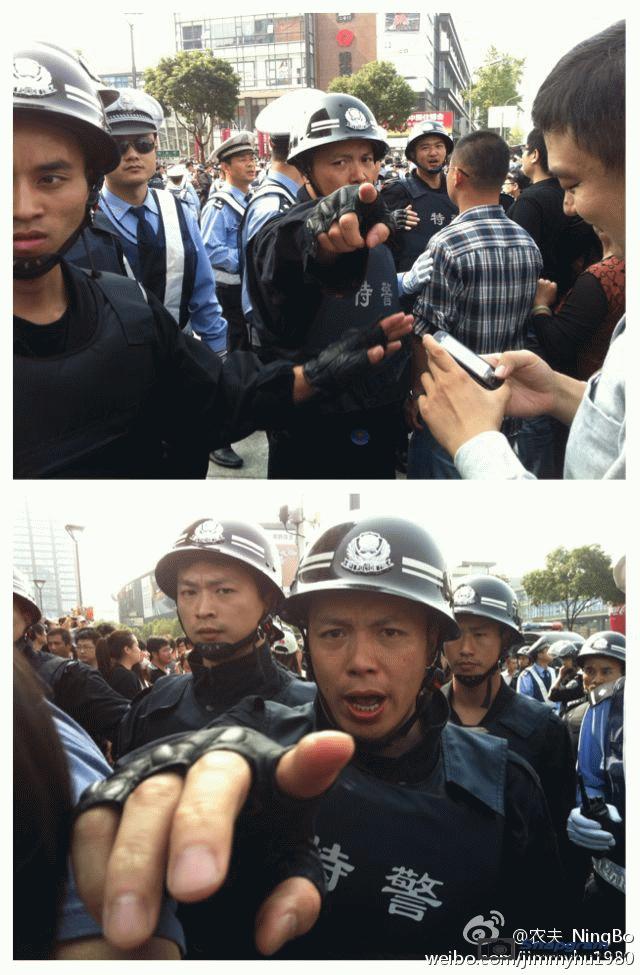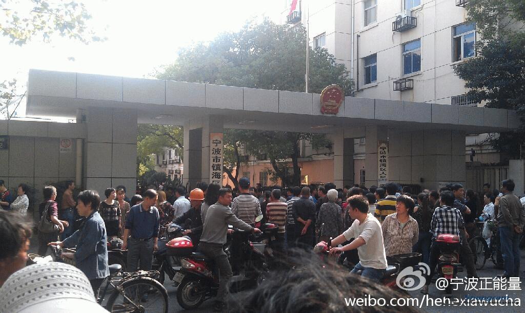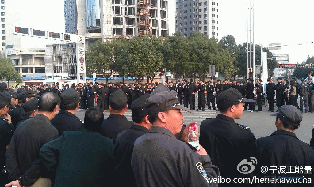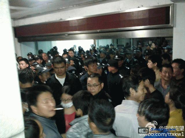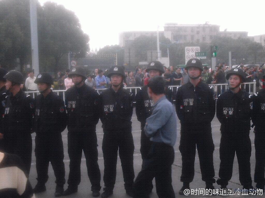 镇海区主干道入口全被警察封锁,交通要道皆有特警把守,但仍有上万人冲破封锁线,走上街头举行示威。
