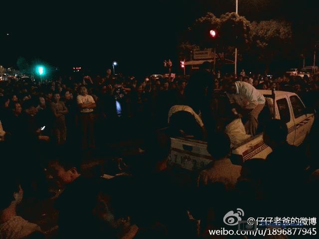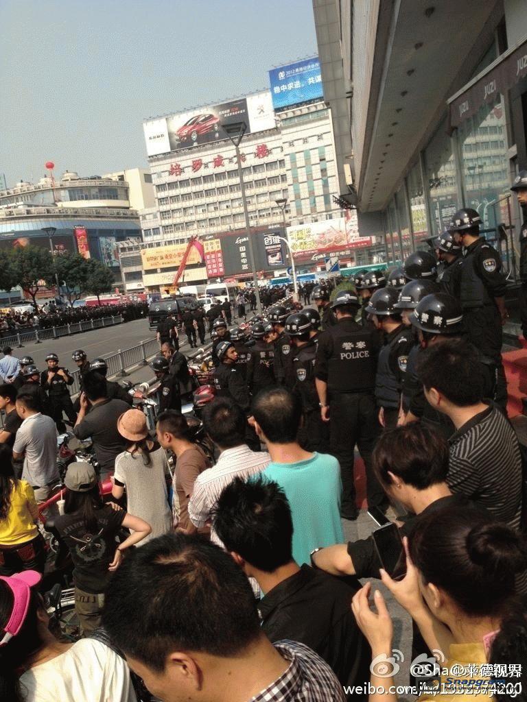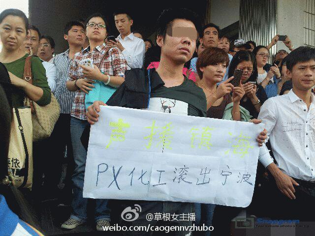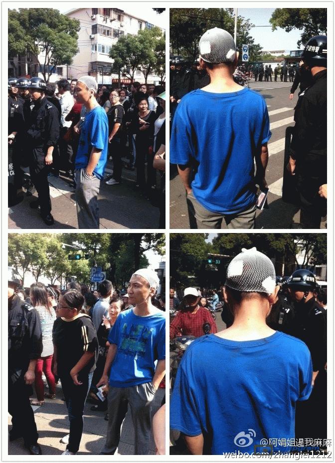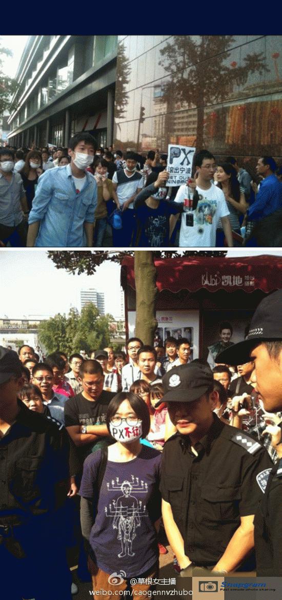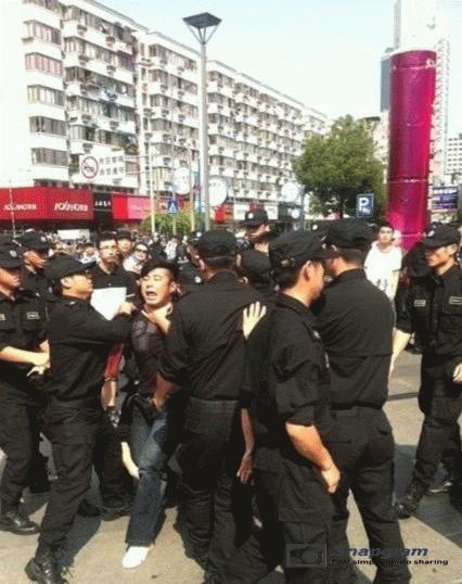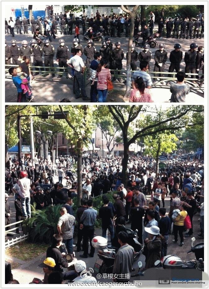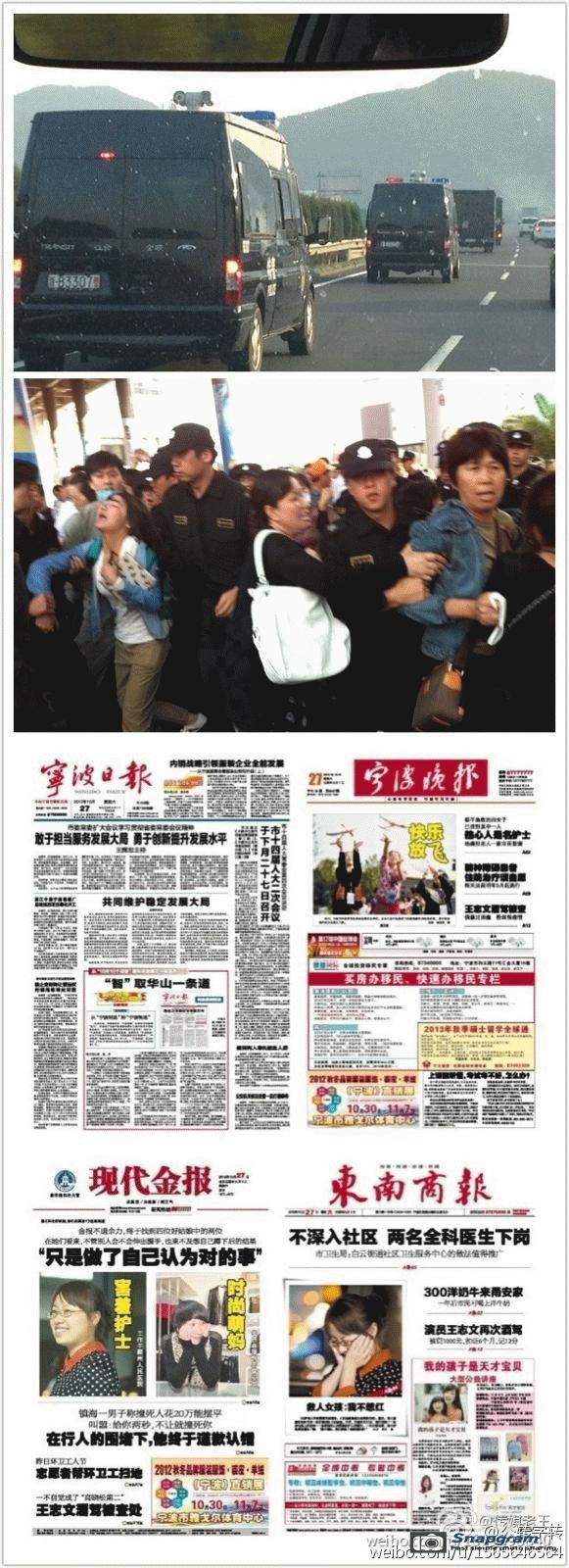 镇海区主干道入口全被警察封锁,交通要道皆有特警把守,但仍有上万人冲破封锁线,走上街头举行示威。