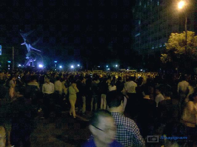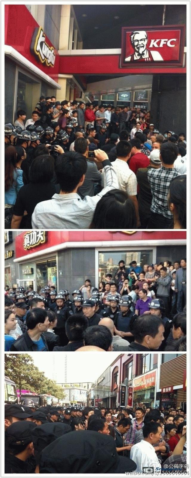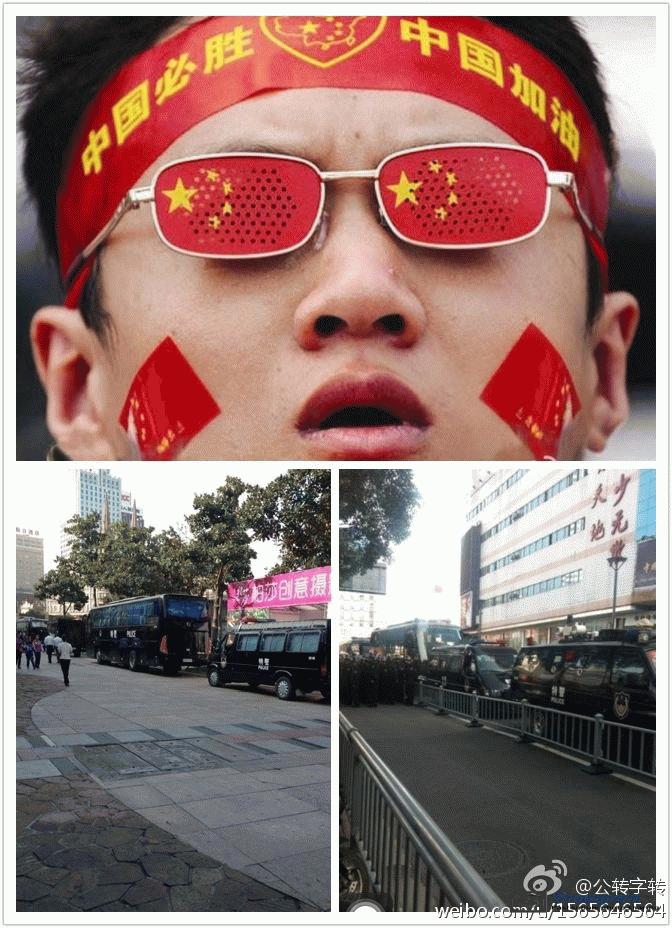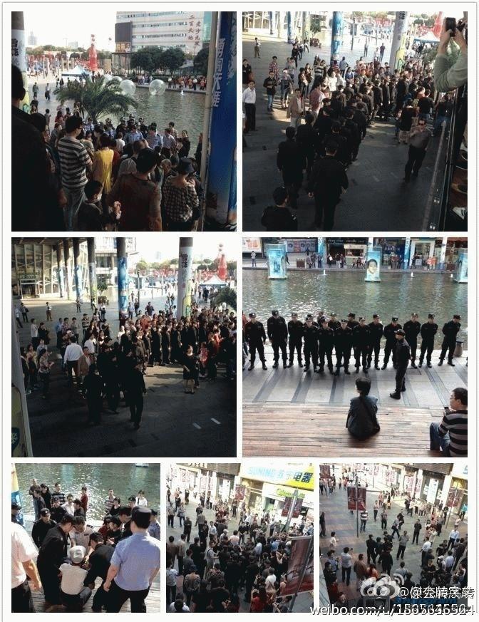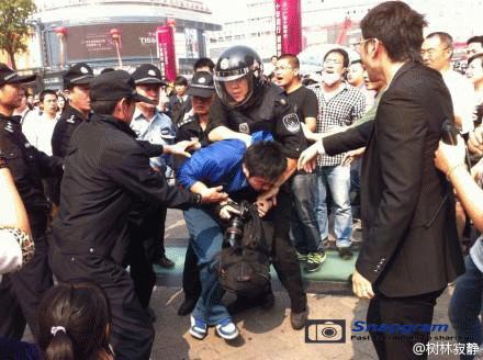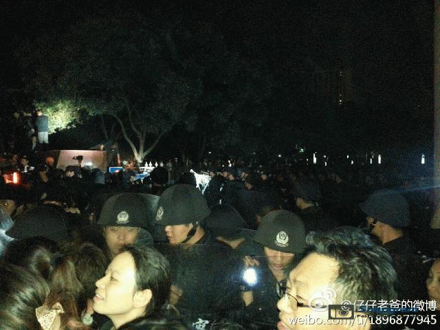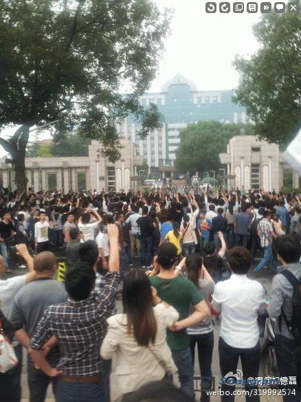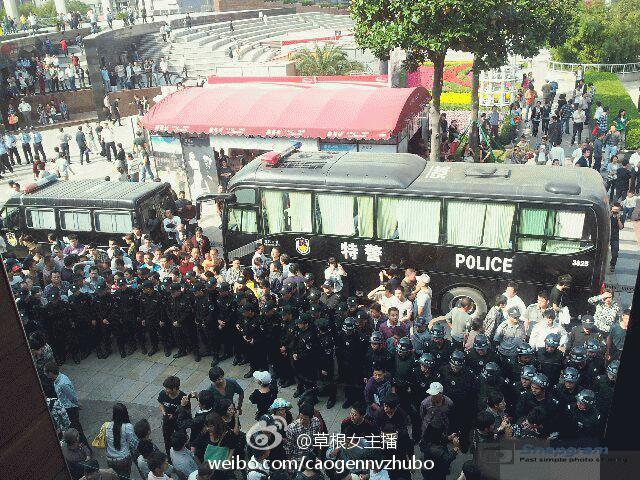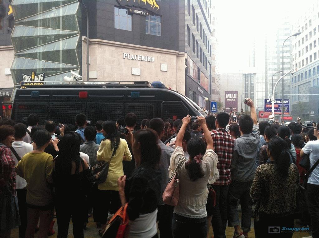 镇海区主干道入口全被警察封锁,交通要道皆有特警把守,但仍有上万人冲破封锁线,走上街头举行示威。