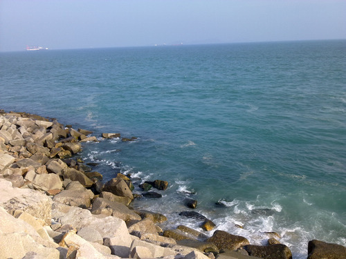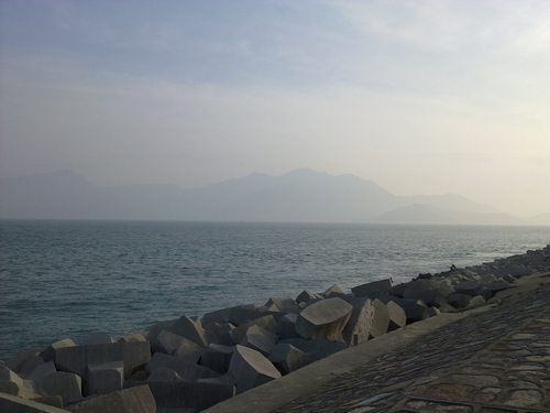 差不多4点才到目的地,风景不错,好深蓝的海水,还有对面的山脉.