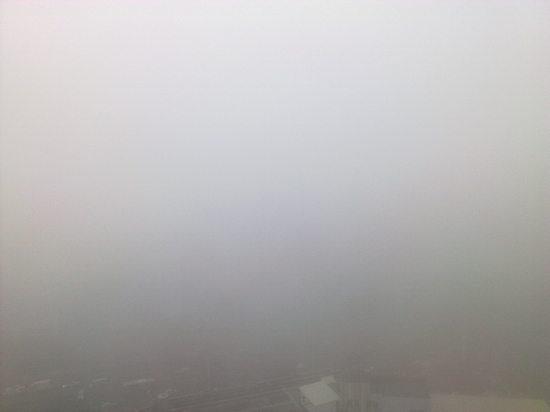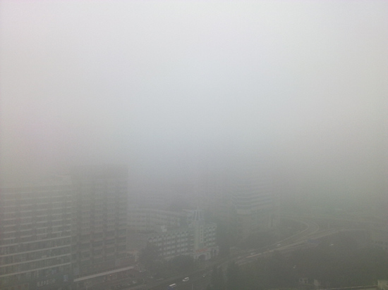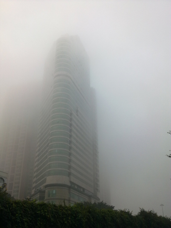 今天早上所拍,先是楼上往下看,对面楼都没了影,整个城市仿佛都消失了.