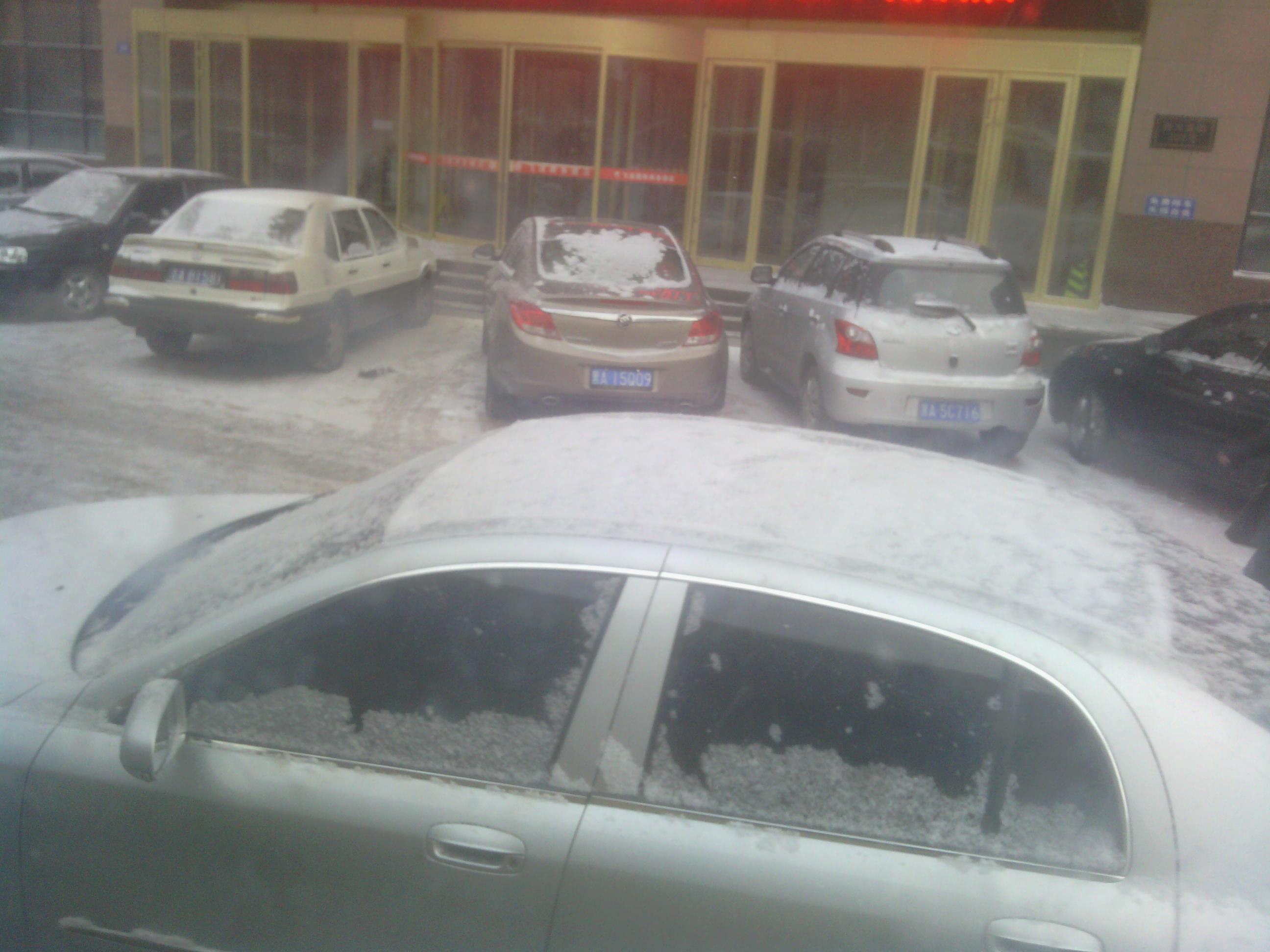 刚吃完饭走出酒店门口,一场小雪扑面而来.可惜500万像素手机,效果只是麻螺麻螺.