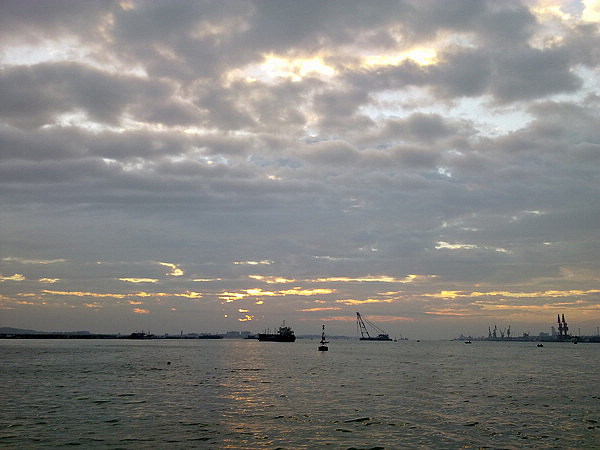 早上7点多出发了,海港上空吐露着金色的光芒,美得绝伦.