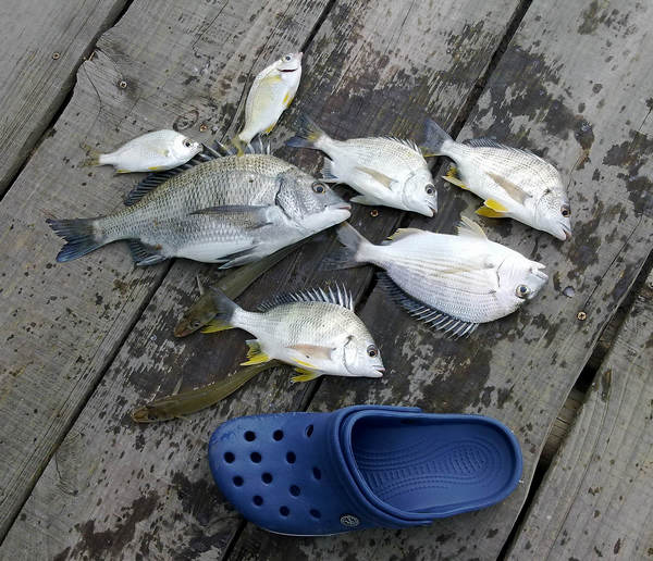 收获很不理想,满海的小油立,虫子放下去抖几下就光钩,真服了这些小东西在那么急的流水里也没给冲走,中午11:30耗光买来的十块钱虫子收竿召船回家吃午饭,就收获下图几条不象话的东西,其中竟有两条比拇指粗的沙尖.