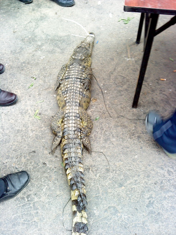 事发今日在水东西湖门囗斜角,刚巧途经,现场有很多人围观,也算俺一个,桌面上有血淋淋的鳄鱼头部与身体各部,其中有些放在胶篮里,那些就不上传了,隐若听到68元一斤,诂计是养殖的吧?也听有群众说这是国家保护动物等话语...,俺有事先走一步,过后的情境就不详了.