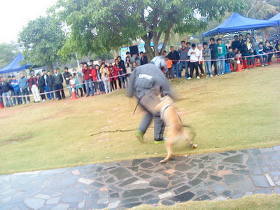 1月26日上午,来自水东地区,茂名市区,湛江地区,阳江地区,高州地区,信宜..等地区,在水东东湖舞池广场,迎来首届爱犬展,当日间中下着微雨,但各地区宠犬爱好者的参与热情丝豪未减,各自领着自己的爱犬参与角逐各项比赛,展现爱犬强劲艳丽一面!而下午即主持人所讲的,将由邀请嘉宾香港特犬训练院教官陈S与其助手们现场表演特犬追逐模拟疑犯场面与特犬爱犬营救主人解除危难险..等景象!(观场众切莫模仿)祝此展以后越办越好越精彩!