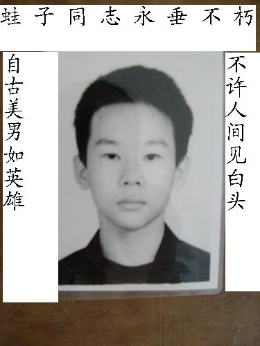 QUOTE(蛙子 @ 2008年01月19日 Saturday, 01:16 PM) 年关将至,花儿正在老去。MM不急家人急。有需要男人应付家人的请联系我。 本人简介:身高1。72,体重148。 面如冠玉,目似朗星,颜如宋玉,貌比潘安 ,英俊潇洒,玉树临风,气宇宣昂,丰神玉逸,虎背熊腰,一表人才,冷冷中带点温柔,不羁中带点放荡,一抬头一举足间,风度翩翩,简直是上帝的杰作,美貌与智慧的化身 人送绰号一朵梨花压海棠的美男蛙子 收费;路费吃喝玩乐礼品客人负责 1000元/天 接吻;100/次 同房另计,价钱面议 若有亲人朋友赠送礼物,我接收 水区MM8折 [snapback]2086081[/snapback]