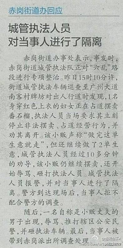W wdfb 荣誉主席 注册 2005-09-04 消息 9,729 反馈评分 297 点数 191 2013-03-07 #16 QUOTE(二马 @ 2013年03月07日 Thursday, 10:07 AM) 我看到广州的很多时候,也相对文明,只是赶人走,会监督你搬东西走,如果不搬,就会没收了. 图片这个例子,不知道具体发生地点 [snapback]3507914[/snapback] 在广州大道南靠近客村立交的路边。。看了新闻双方都各打五十大板吧,起先城管文明执法,规劝小贩停止买卖,但劝导了10分钟,小贩继续买卖,继续辱骂城管。。才出现画面的那一幕。。。