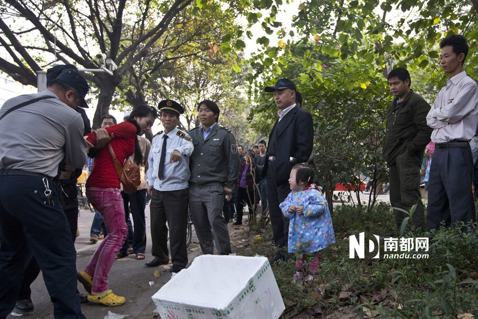 城管与女小贩发生冲突后,女小贩被警方强行带走,她的孩子在一旁放声大哭。 南都记者 黎湛均 摄