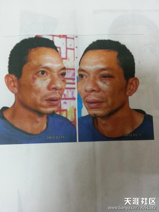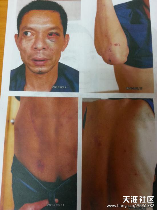 2013年3月10日早上,在彭村村前小卖部被本村的吴旭金(电白县公安局干警,花名叫:九金)开几台车,带领二十多名黑社会成员殴打我致重伤(附上照片),还多方威胁我家人说要收拾我全家,至今我都不敢回家。他来打我前还给我打电话,问我在哪里?我告诉他我在村前的小卖部,不到10分钟他就带人来打我,在众目睽睽之下,他们用水管将我打晕,然后用冷水浇醒我又打,过程持续近一小时,我当时已经被打到不省人事,这是大量村民亲眼见到的并且可以作证的。