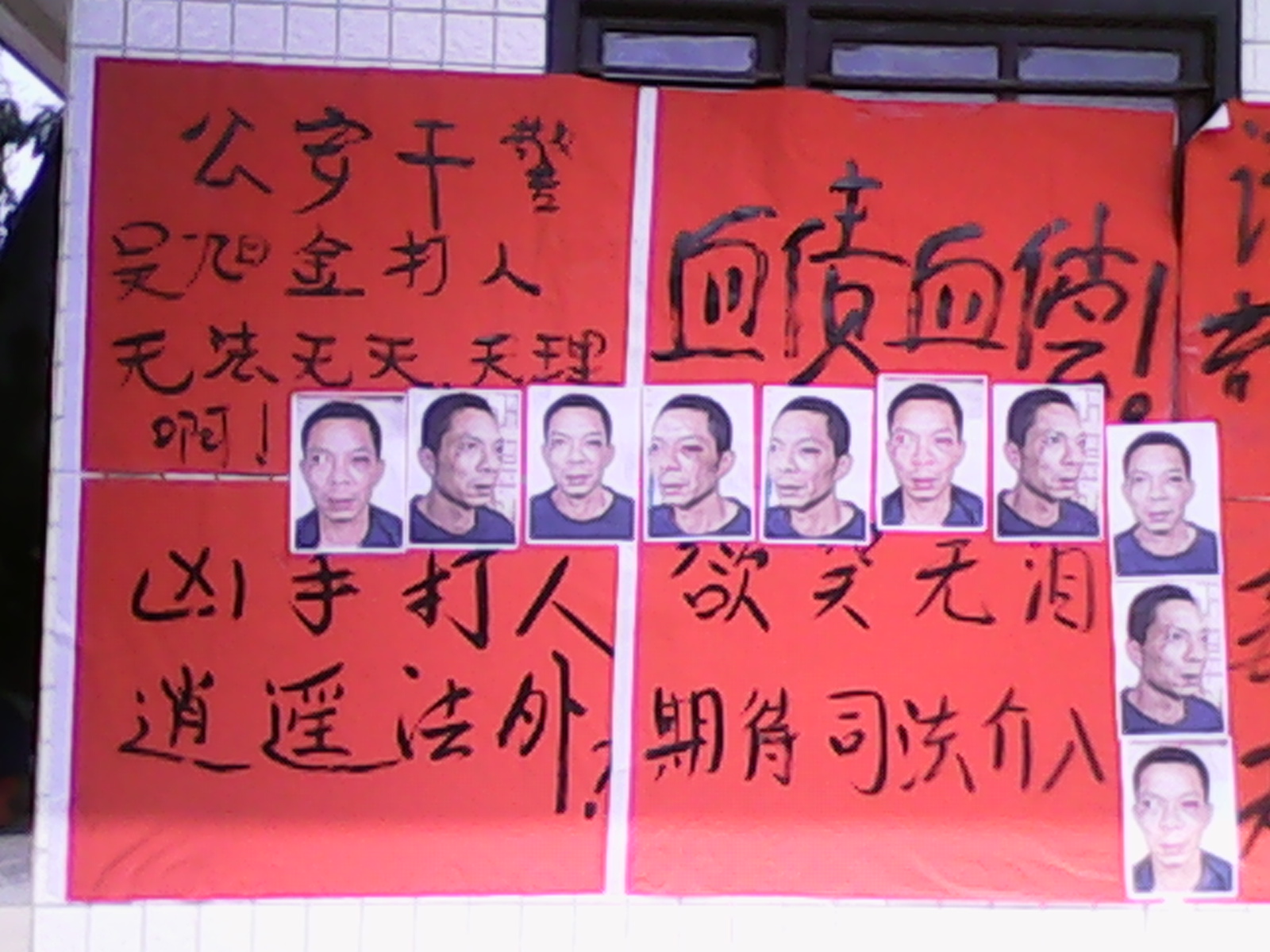 司法何在?司法尊严何在?我们一家活路在那里?上有老,下有幼,全家就我一个劳动力,靠种植芥菜维持一家生活起居,发生这惨绝人寰之事到今天,医院医疗费没着落,十天来,除了去医院吊针,我只能在家里躺着,断掉的胁骨痛得入心,十天瘦了十斤,吃不下,睡不着,现在能做的就是盼着司法尽快能够介入,给我家一条活路,给司法一个尊严,也给我全家活下去的勇气!严惩凶手,铲除警队毒瘤,是时候了!据群众所举报的材料,纪委也应对残毒打人干警吴旭金进行调查,一个普通干警,是什么原因使他如此有恃无恐?又如何能拥有几千万资产?给广大老百姓一个透明的结果吧。遗书已经写好,生命如蚁,不能司法公正,不能将打人凶手绳之以法,我实名举报,每天都会联系各大媒体,或上访到市各有关部门,或上访到省各有关部门,为尊严,为活路,为正义,为能将真相实现,无论如何,宁抛头颅,必跟黑恶势力抗争到底!此为凭,一百多万电白人民群众定能目睹公安干警中的这只害