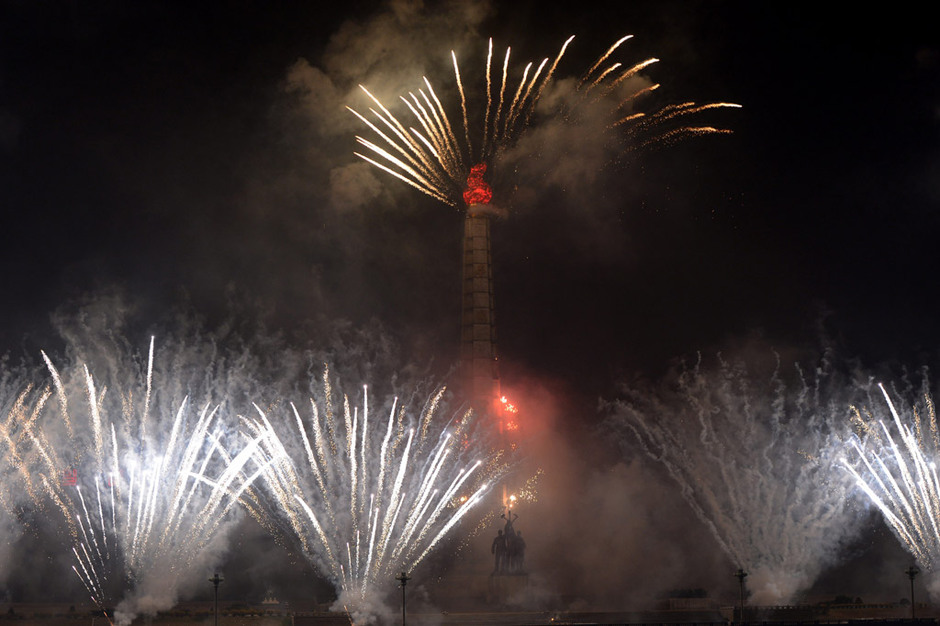 朝鲜举办“四月之春”――广场文艺,庆祝太阳节。