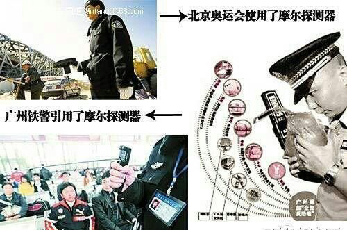 公安部2008年曾大批购买“摩尔探测器”用于奥运、春运等安保检测工作,当时“摩尔探测器”每套采购单价普通为二十八万元人民币。最近,该骗局始作俑者James McCormick被英国法庭判定欺诈罪,因为他将价值只有20美元的高尔夫球寻找器伪造成假“炸弹探测器”,高价卖给中国、伊拉克等国的军队和警察……