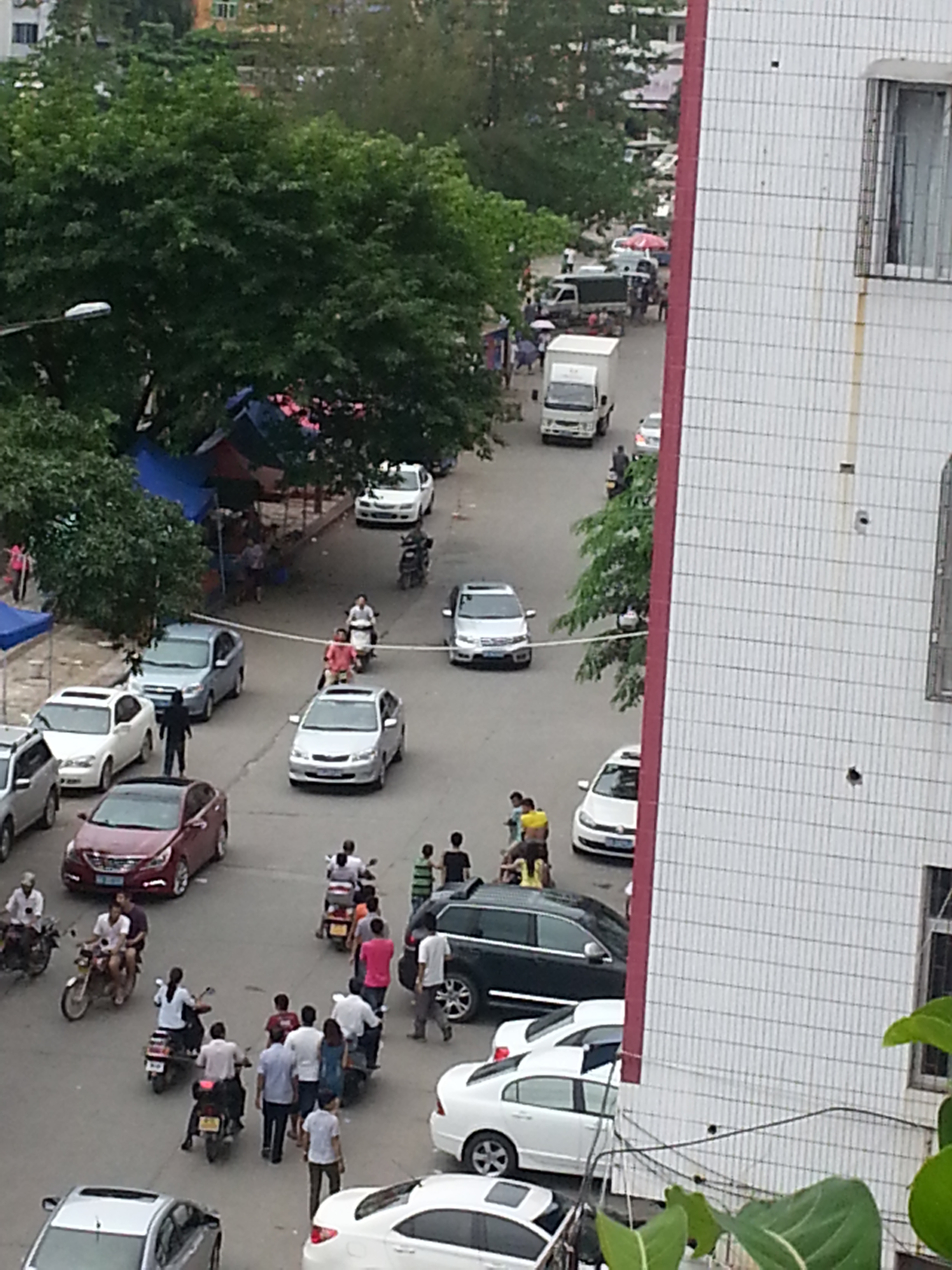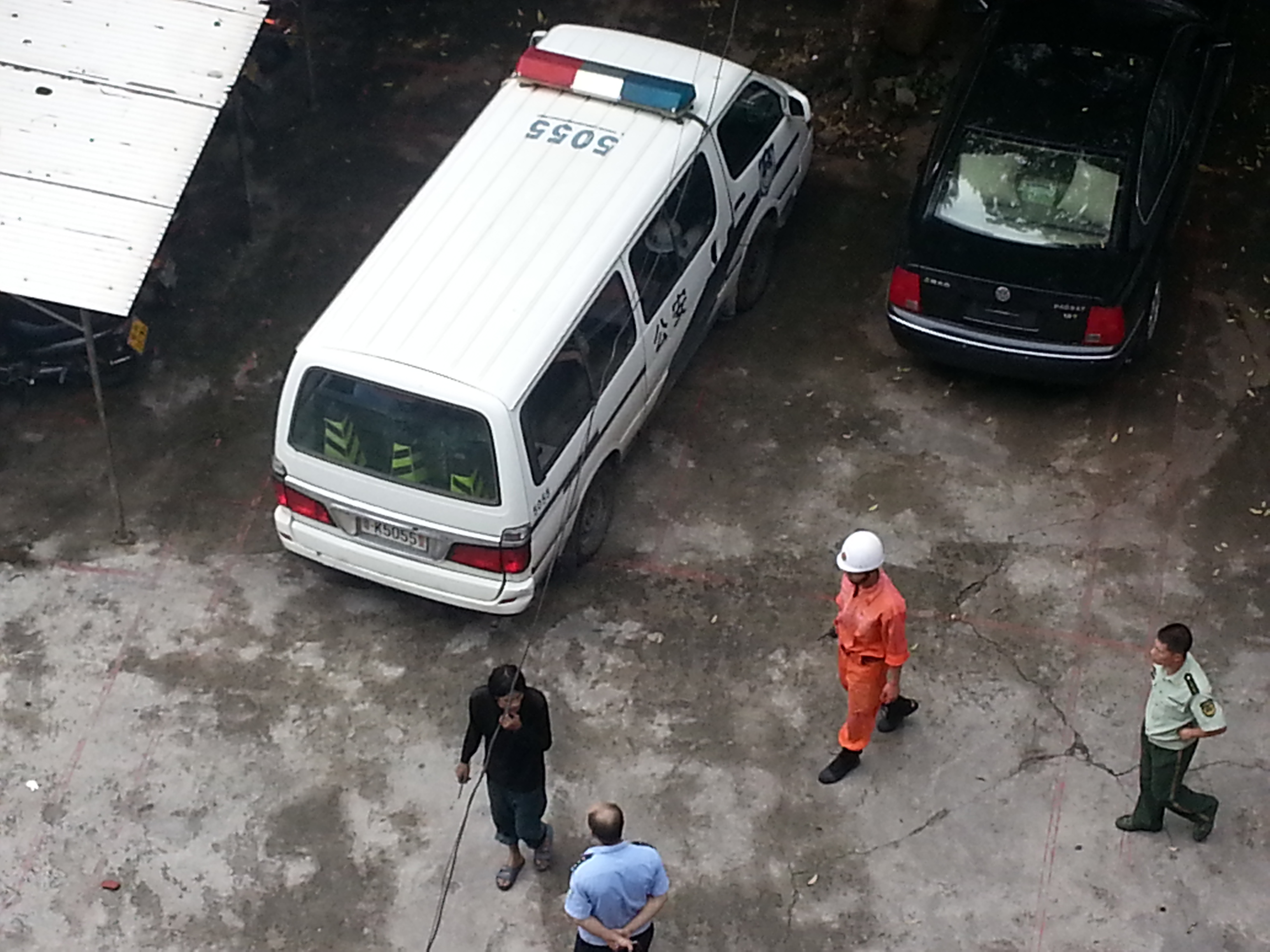 今天中午1时半,一疯子跑到财政所楼顶,一会坐在栏杆上,一会拿砖头向楼下乱丢,门卫报警,几分钟来了10多名警察,一会又来了几位消防人员,也来了救护车。各部门反应及时,先赞一个。