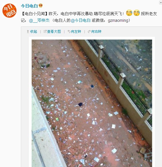 海 海的故事 初中一年级 注册 2008-03-05 帖子 439 反馈评分 0 点数 0 2013-05-27 #24 眼拙,那图片是电白中学的吗? 看楼下是泥地+黄泥水,围墙外面也像是泥地,还有深深的车轮痕迹。 楼主出来,求证下!