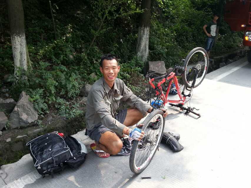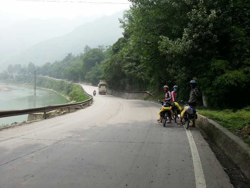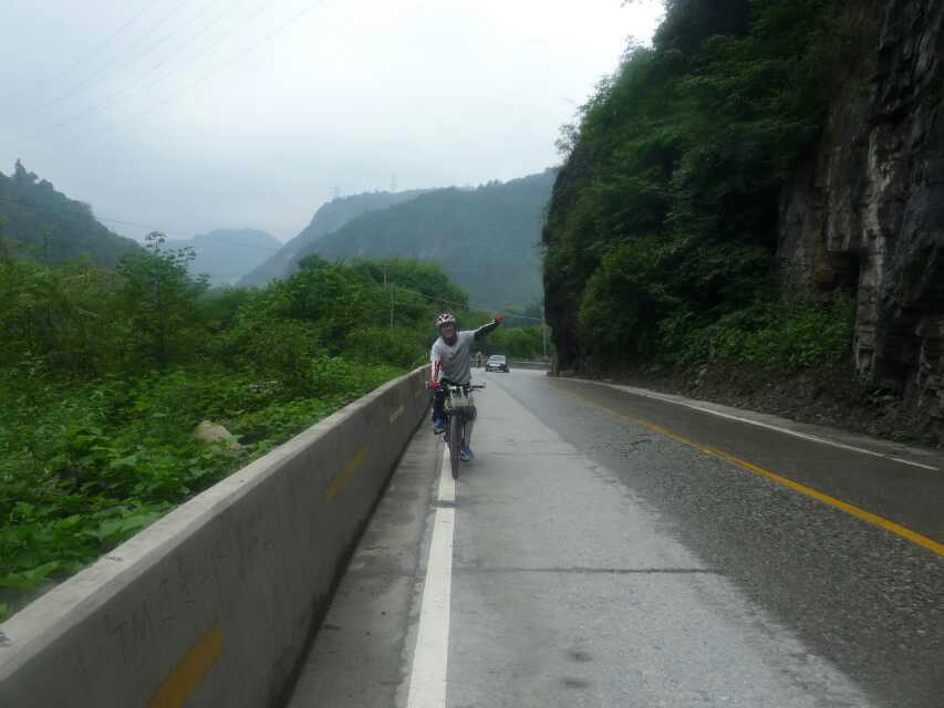 骑行西藏d-5:虽然今天的路程是最短的,但是从1300米上升到2100米的高度还是很可怕的!从新沟旅店出发就开始爬坡,连续的27公里爬坡,什么叫苦?反正我就说不出来了!27公里的路我们花了5个小时!骑在车上的感觉是人车合一了,因为下车走2步路的感觉比骑车还要痛苦!路上终于第一次遇见塌方了,还好不是很长,只能扛车过去!就这样开始了我们的噩梦!一路的坡都是1:1的轮圈踩,终于把之前所学运用到实际中了:埋头苦踩,不要望前方!望着前面会崩溃的。经过4个多小时的机械运动熬到了二郎山隧道!那个激动啊兴奋啊!拍照。。穿过二郎山隧道是10公里的下坡!这才是王道,这才是骑行的希望!下坡都是风大,所以都把雨衣拿出来防寒了!
