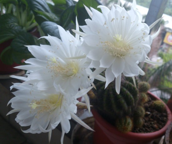 它虽然长着满身的刺,但花蕊很美,像昙花一现,早上开,中午回去已经谢了。