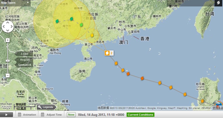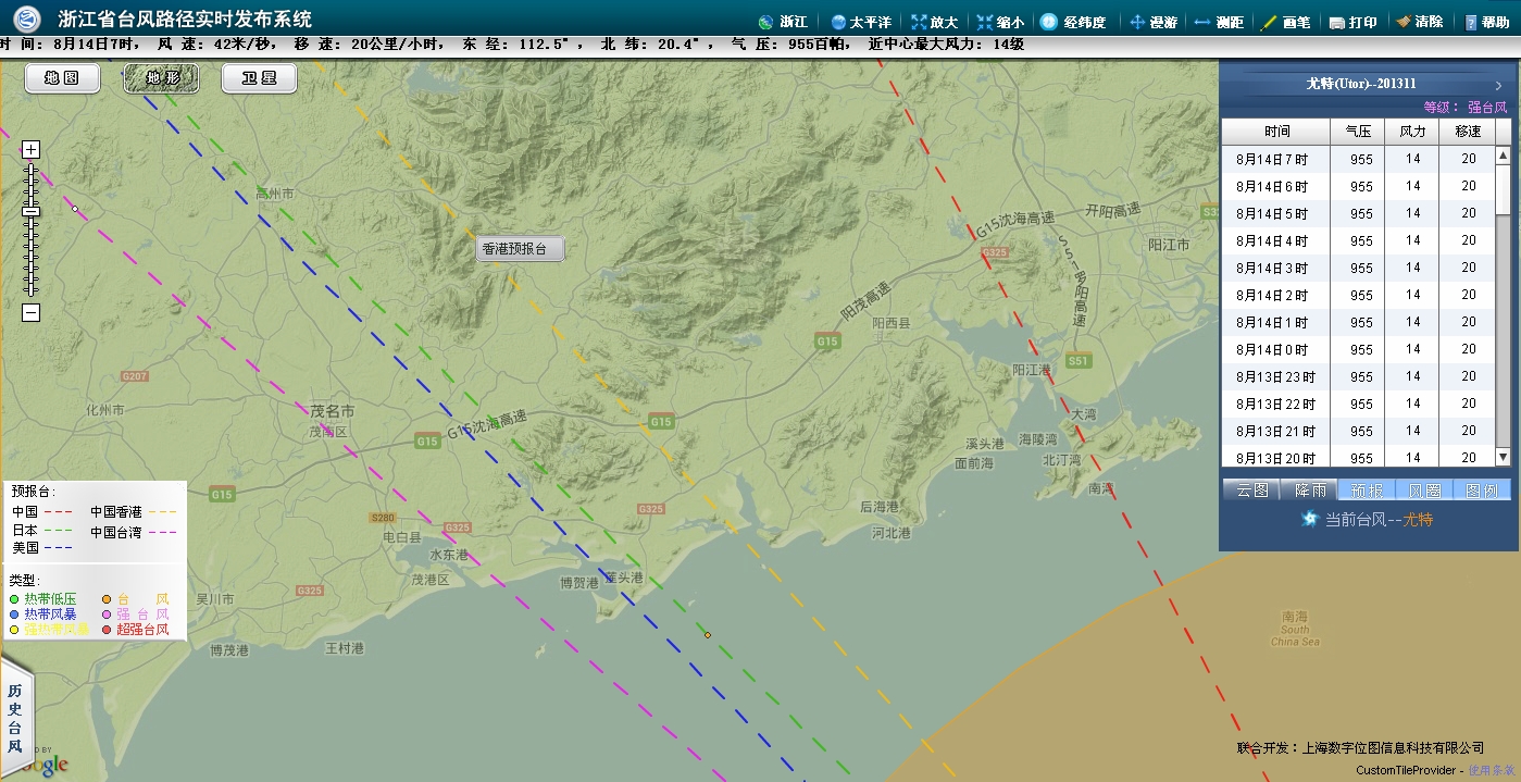 hchcc 荣誉会员 荣誉会员 注册 2004-08-21 消息 7,429 反馈评分 1,830 点数 191 性别 男 2013-08-14 #66 实时:http://typhoon.zjwater.gov.cn/ ,开始偏阳江方向去了。