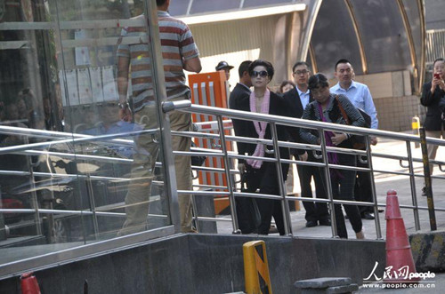 今日上午,梦鸽黑超遮面抵达海淀法院,进入安检口的照片