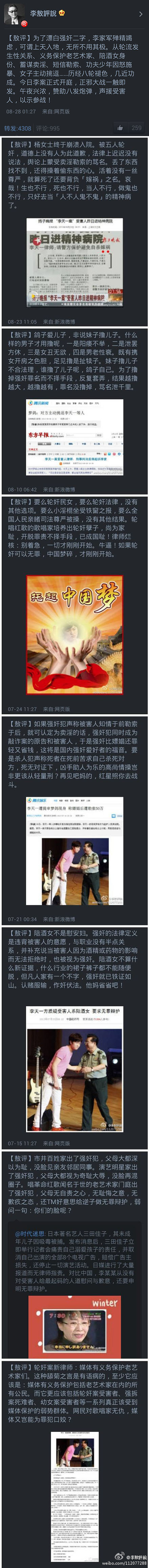 【敖评】李某某判了十年,李家军完败。当然,傻逼军师们还可以上诉,这是他们的权利和自由,既然一路打着无耻的行军旗,索性将无耻进行到底,至少可以奖励自己一枚从一而终的勋章,同时可以把仙人跳的才艺继续展示,为有朝一日进军文艺界和娱乐圈留条后路。作家导演编剧都可以,律师呢?就歇了吧。