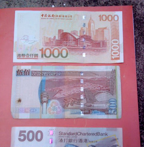 貌似以下这些面值的伍佰或壹仟元港币的人民币真的出现了?楼主确实一个月都不够一张纸