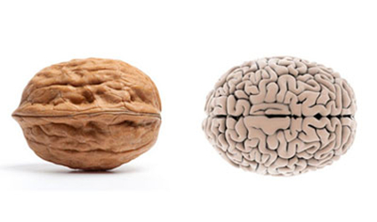 4、核桃就像一个微型的大脑,有左半脑、右半脑、上部大脑和下部小脑,甚至其褶皱或折叠都像大脑皮层。