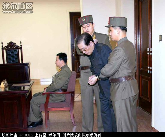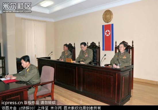 图为朝鲜公布朝鲜军事法庭12月12日判处张成泽死刑的照片。