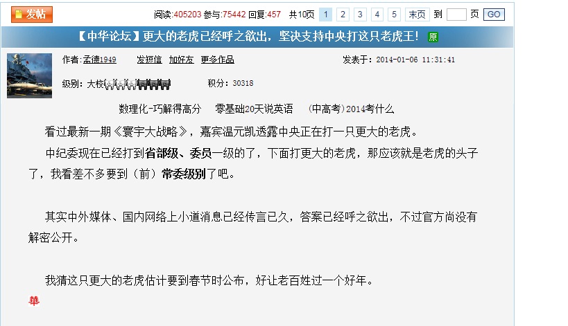 更大的老虎已经呼之欲出,坚决支持中央打这只老虎王!