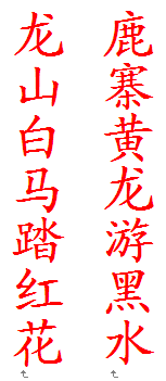 QUOTE(湖海山人 @ 2014年01月11日 Saturday, 11:54 AM) 我改的都是县地级名,远还可以吧。 [snapback]3610164[/snapback] 难道县级地名就可以远? 而市级镇级就不可以远? 龙山马踏皆镇级,而红花却是乡级(村委会),出名如此,对句难道不可以如此? 有地名就行了,管他什么地名。
