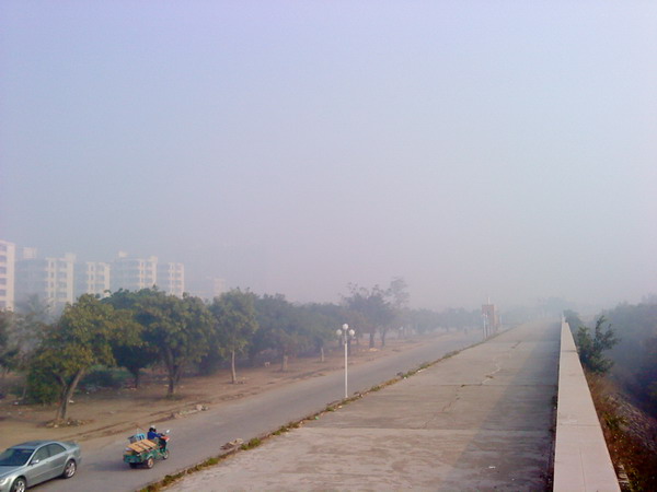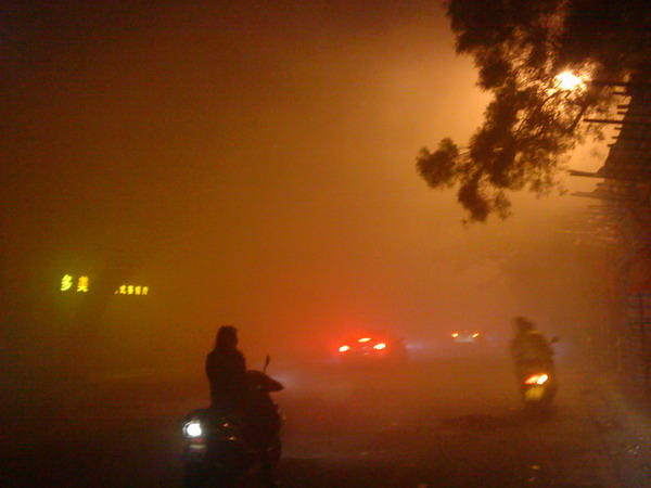 那不象雾....因为雾在印象中有湿气.打完麻将出来。连车都没一点潮湿!!!