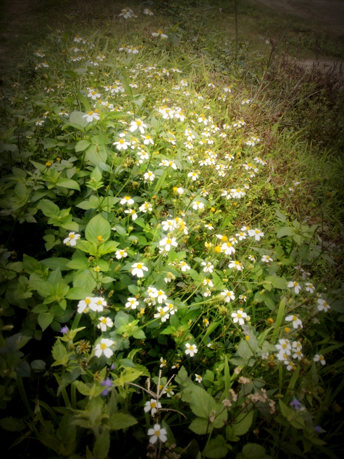 路边很平常的花草,没什么特点,但它们在我心中,是摇曳之生命,陪伴我的下乡路。