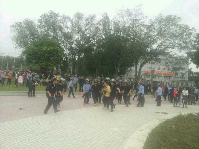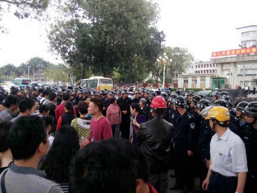 防暴警开始打人了,茂名人打茂名人,理性游行遭到暴打。我们在保卫自己的家园,为什么要打人?