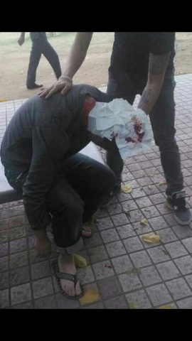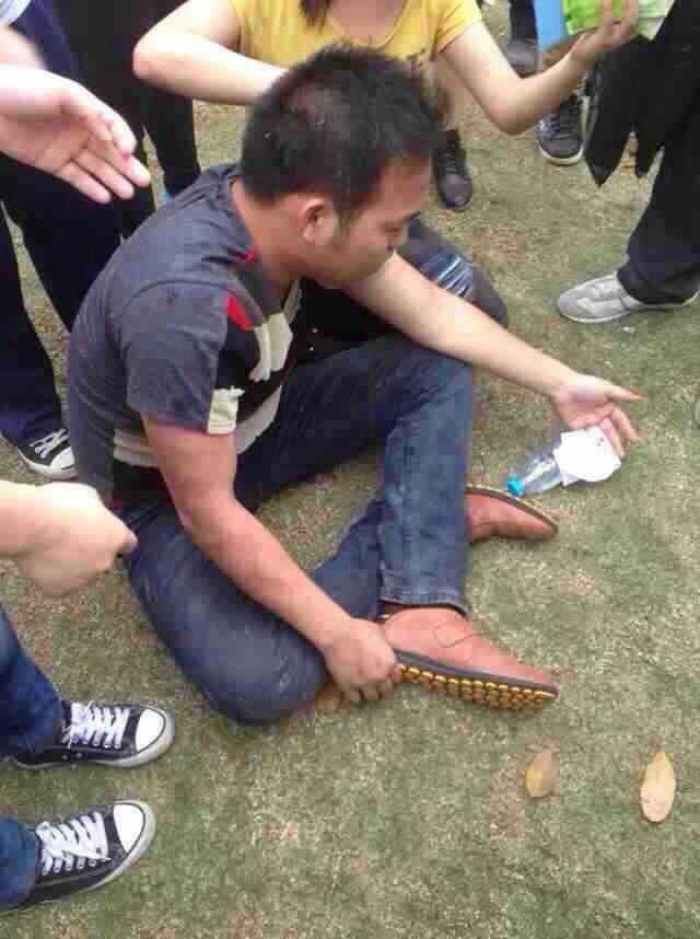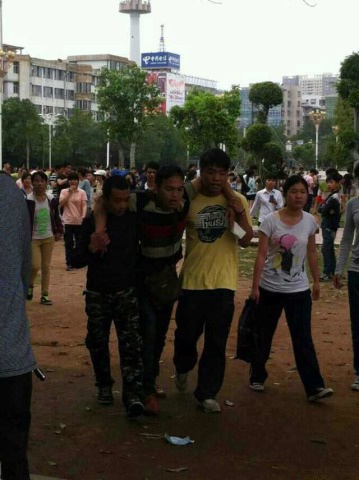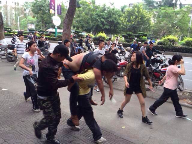 市委门口大草坪开始打人,打伤好几个,未成年人都打