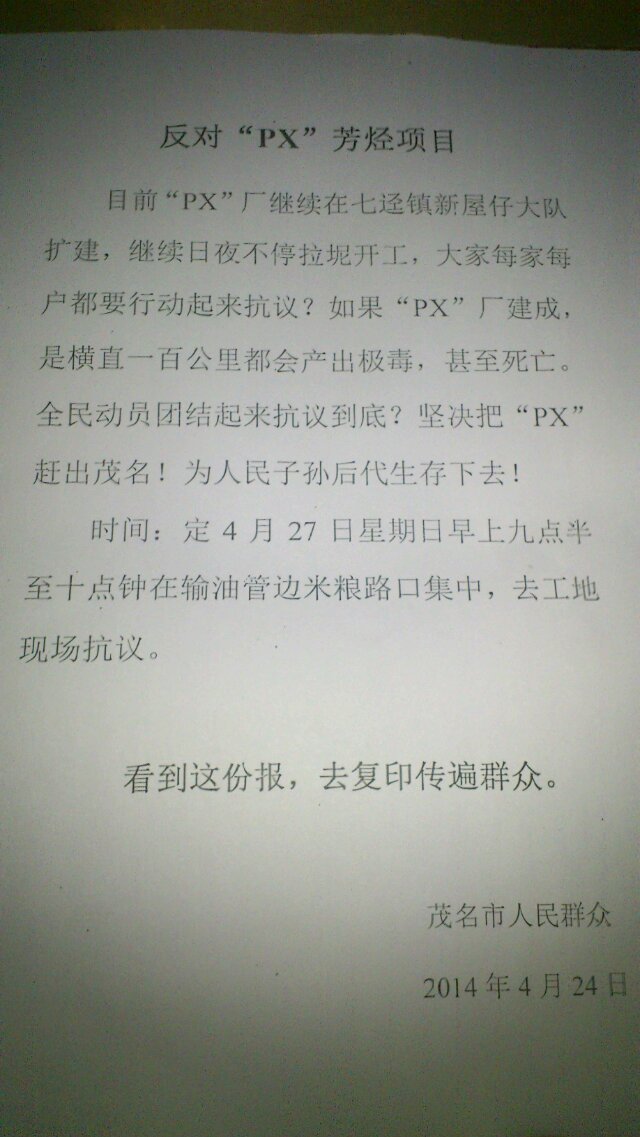 <b>关于茂名PX项目的官方文件,实行白色恐怖,号称不因个人意志而转移</b> (2人在浏览)