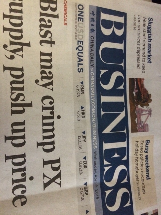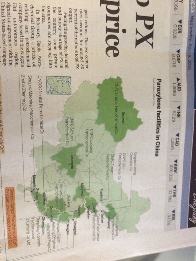今天的中国日报列举了在华PX项目名单,茂名赫然在列!