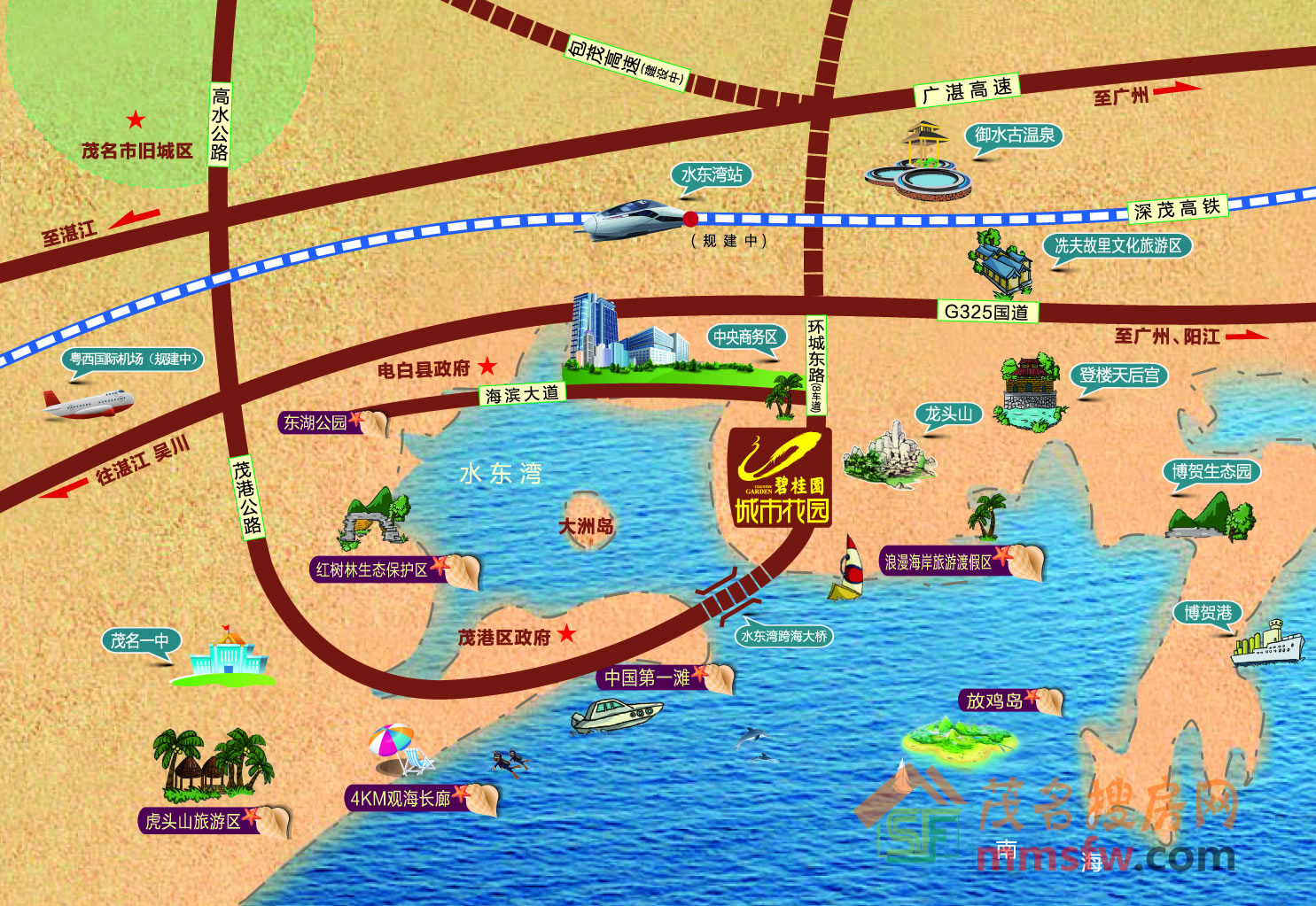 即将发生的第三败笔,深茂高铁忽悠电白区不设水东湾站,茂名未来城市中心水东湾150万市民将远离高铁!