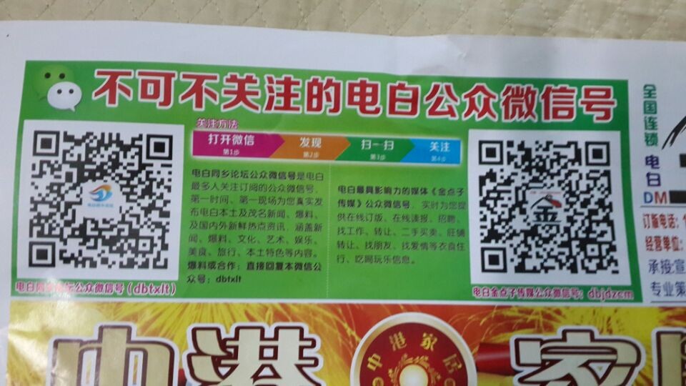 某天上论坛看到一个微信号推广的贴子,管理员说不是官方微信。 今天买菜回来门缝里有这张广告,打开一看,马上注意到这个广告,当时心想:哈,论坛自己开个微信号来跟山寨作斗争了。再仔细一看,不对,就是这个山寨的呀,发上来,管理员看看怎么办。 我想像我这种心里装着论坛但不常来的人很多,没看到那个帖子的人更多,一看到这个广告都会以为是官方的,商业目的很明显啦。
