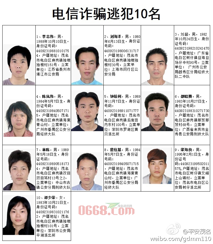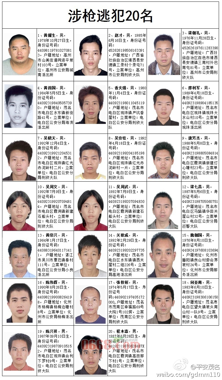 为深入推进全市公安机关开展打击整治涉枪、电信诈骗及伪造银行卡犯罪专项行动,严厉打击严重危害社会治安的刑事犯罪,保障国家和人民的生命财产安全,创建平安和谐茂名,现对黄耀生、李志伟等30名重点涉枪、电信诈骗及伪造银行卡的逃犯进行公开通缉。