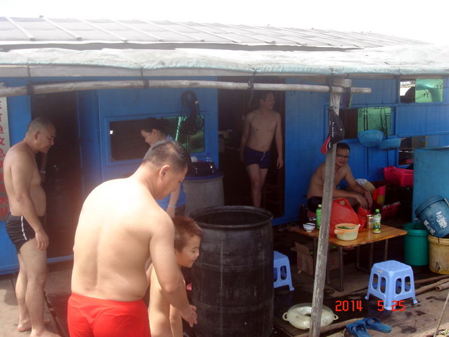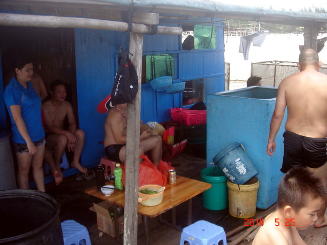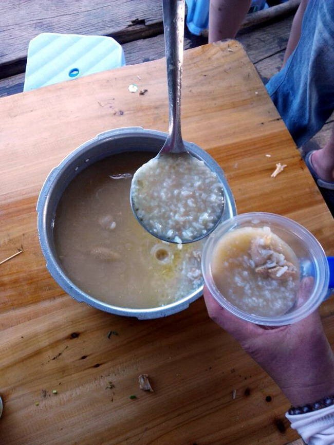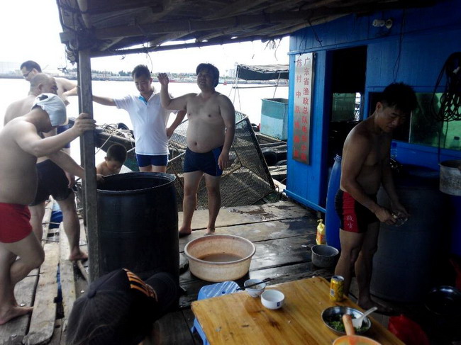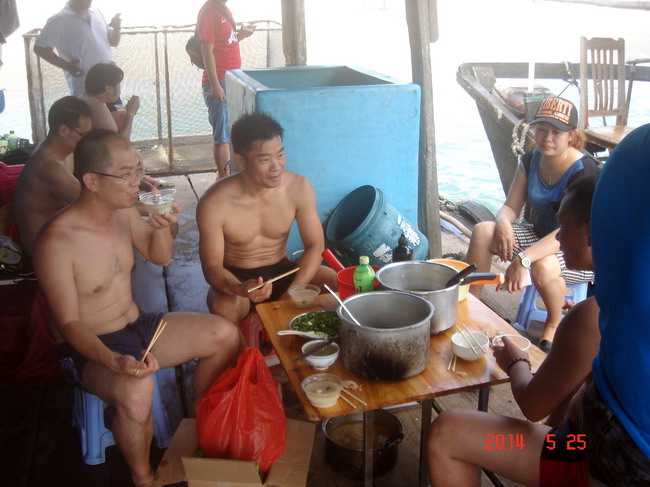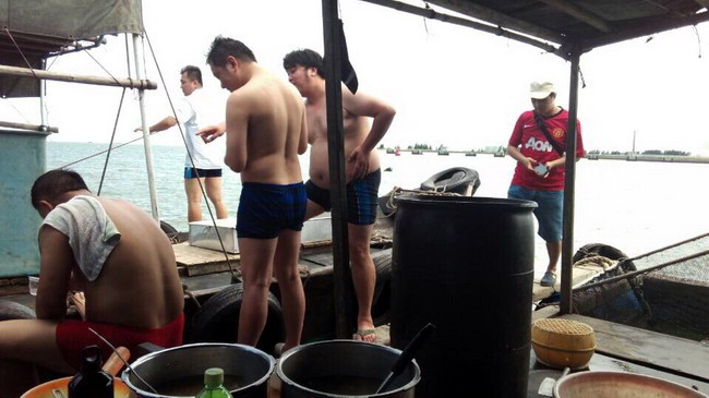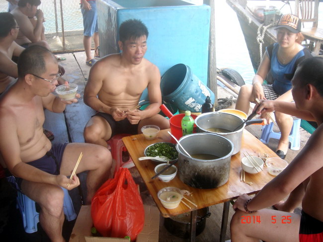 费用:3元/人(买棕子当手信给渔排换淡水);另外在渔排煲海鲜粥或鸡粥,约12至17元/人,不参与吃粥的没此项费用。当天如有需要代购棕子的3元/条。其它休闲食品与酒水自带,渔排有免费开水供应。