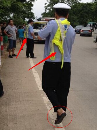 我们的交警叔叔 在执勤是否注意一下自己的形像.