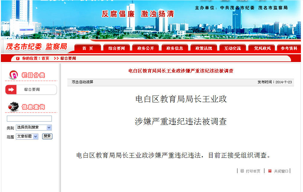 电白教育局长王业政六大罪状 (5人在浏览)