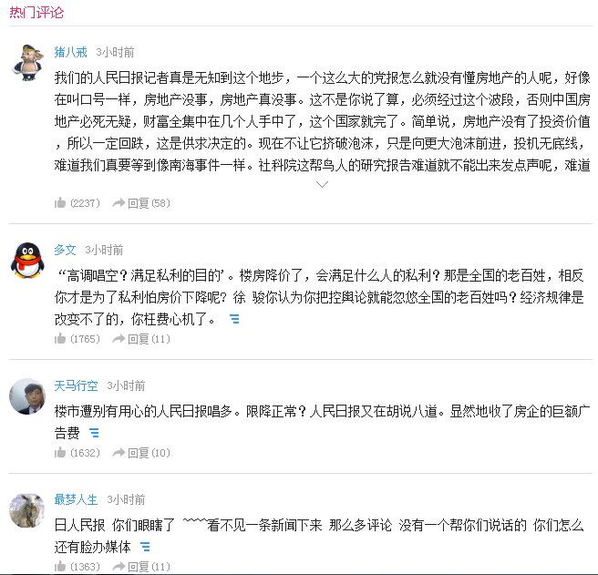 人民日报:楼市遭别有用心者唱空 房价调整正常
