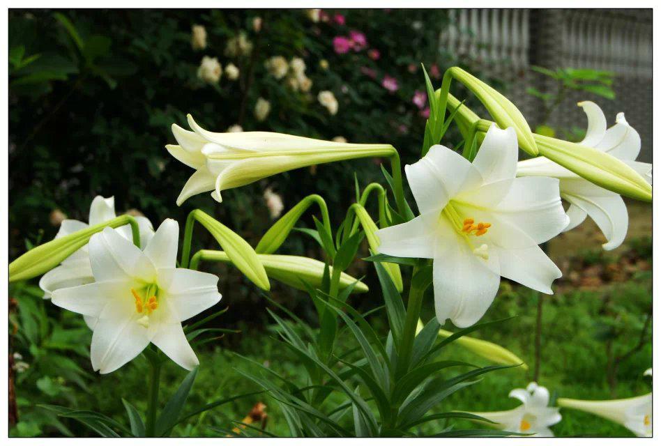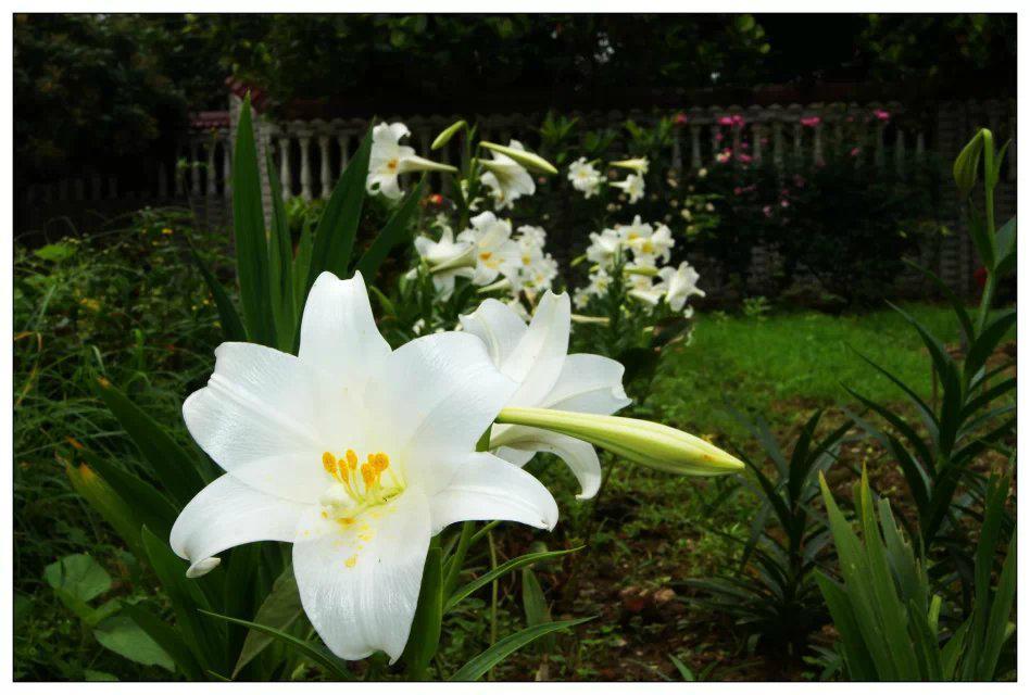 现在每天早上起来都会去看看院子里的百合花,一朵接一朵地开,每一朵都那么耀眼,即使是白色,也让四周所有鲜艳暗淡无光。青色的叶子,五六片花瓣微微向下卷曲一朵有一朵的姿态,宛如一位亭亭玉立的少女在翩翩起舞 ,说不上让人陶醉,但用高雅纯洁来形容一点也不为过。