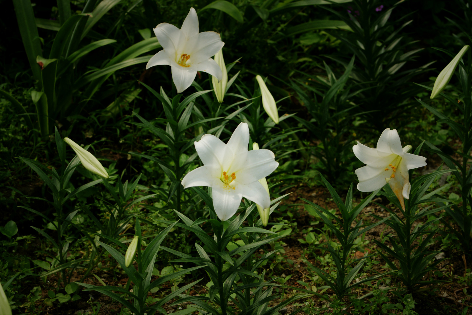 百合花类似于水仙有顽强的生长欲望,但它不同于水仙能四季常青,待到花谢之后叶子花杆便慢慢枯黄,然后在地下留下许多球形种子。她的所有努力只是为了一年之中唯一的一次绽放,竭尽全力地诠释她的美丽,然后便快速消失于地面,或者正因为她选择了这样的生存方式才显得她的高贵。