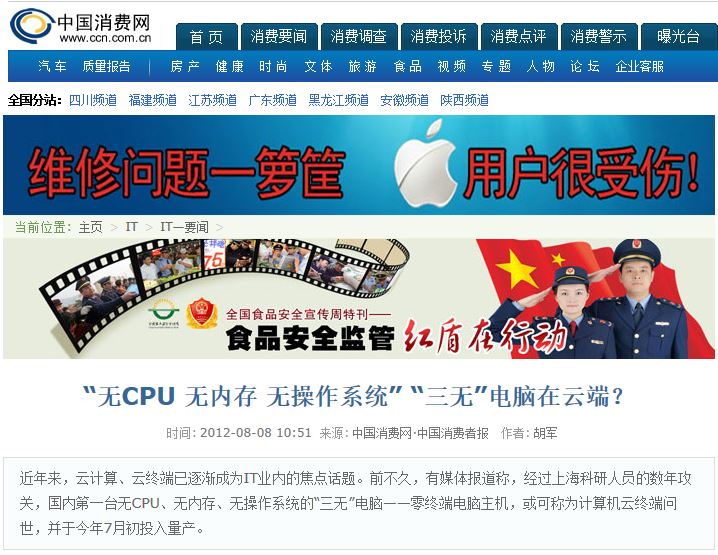 另外,云终端也不是没有cpu [Central Processing Unit],cpu-叫微处理器,也叫中央处理器,甚至单片机也是cpu的一种[因为嵌入了cpu],cpu不是电脑独有的!现代电子设备,例如各种工控机,制导系统,电子医疗器械,各种视听设备,当然也包括你说的云终端,一样离不开cpu,你如果连这些都不懂,真该好好回去补补课了。