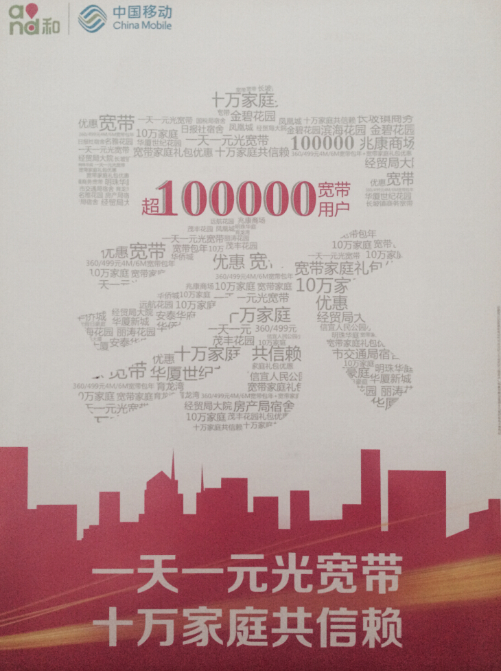 中国移动光宽,光纤到户,新装或续费送手机话费 (2人在浏览)